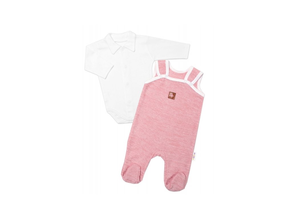 2-dílná soupravička Star, body dl. rukáv + pletené dupačky, růžové