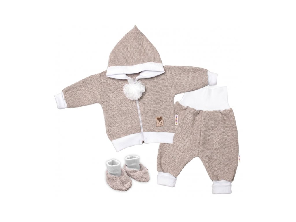 3-dílná souprava Hand made, pletený kabátek, kalhoty a botičky, béžová
