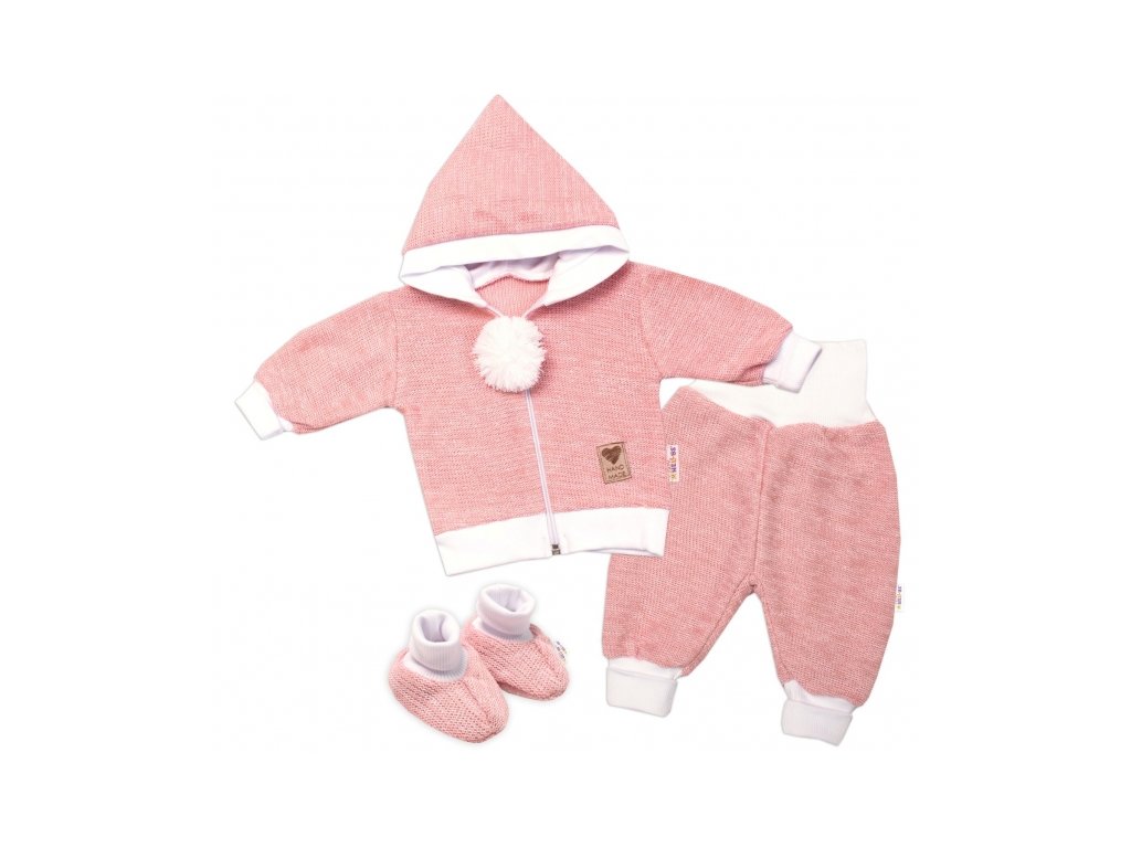 3-dílná souprava Hand made, pletený kabátek, kalhoty a botičky, růžová