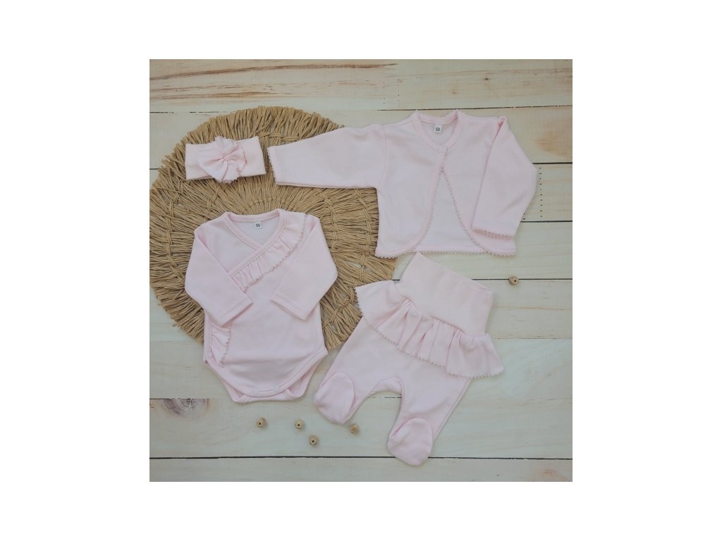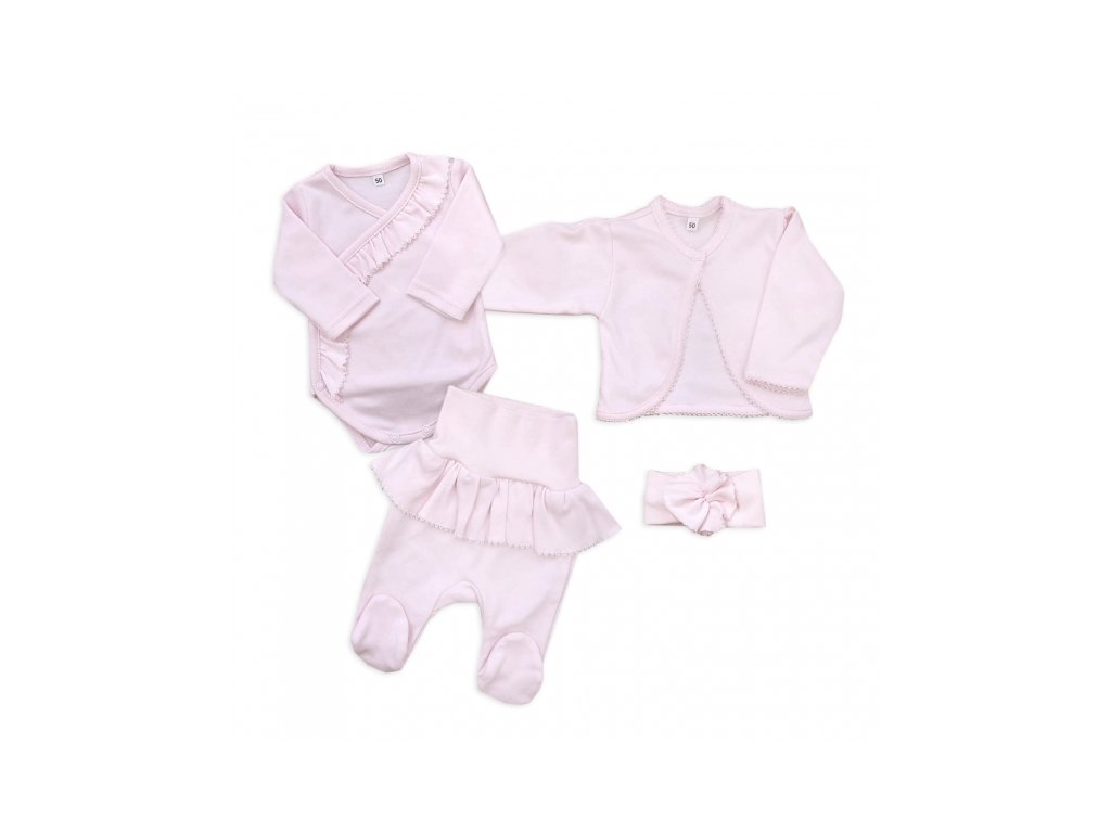 4-dílná bavlněná sada pro miminko do porodnice, sv. růžová