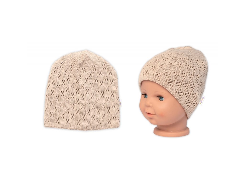 Ažurková čepice, dvouvrstvá, bavlna, Baby Nellys - cappuccino