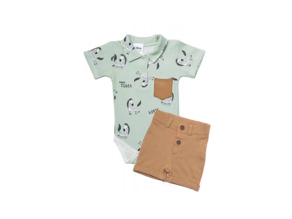 Baby Nellys 2-dílná sada body kr. rukáv, kraťásky, Zebra - mátová, hnědá