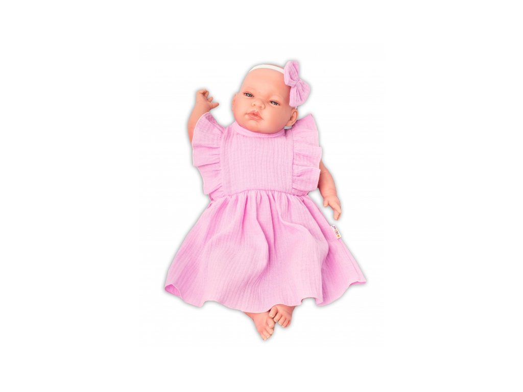 Baby Nellys 2-dílná sada mušelínové šatičky + čelenka, růžové