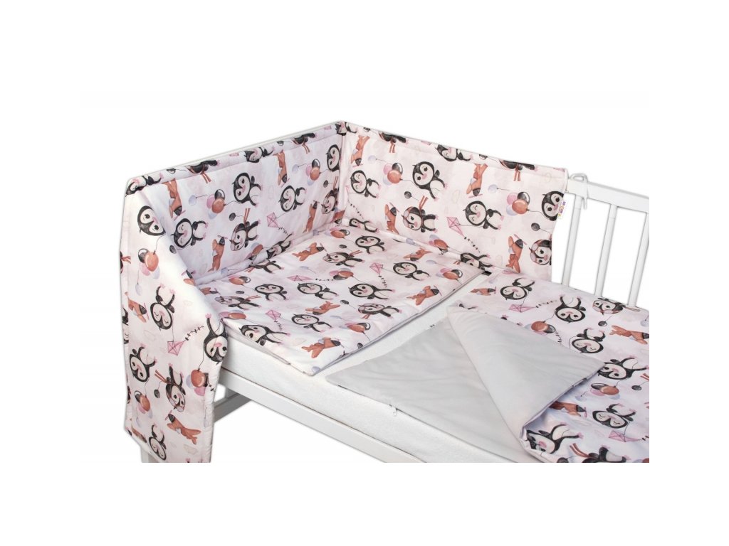 Tato sada je ideální pro miminka, kterým chcete dopřát pohodlí a ochranu při každém odpočinku. Mantinel chrání před tvrdými příčkami a zároveň zútulňuje prostor postýlky. Povlečení je měkké a šetrné k dětské pokožce, vhodné pro každodenní použití. Sladěný motiv tučňáků navodí příjemnou atmosféru a dodá pokojíčku veselý nádech.