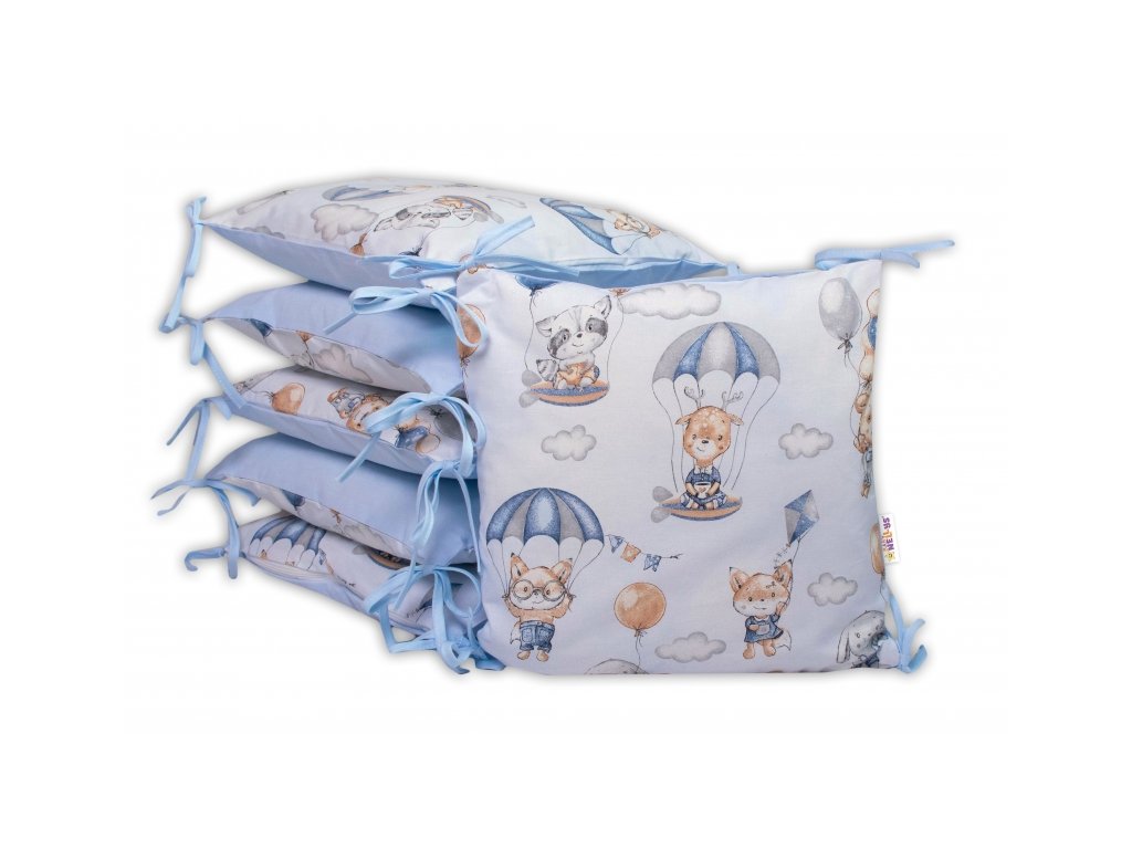 Baby Nellys Bavlněný polštářkový mantinel, Létající zvířátka, modrý