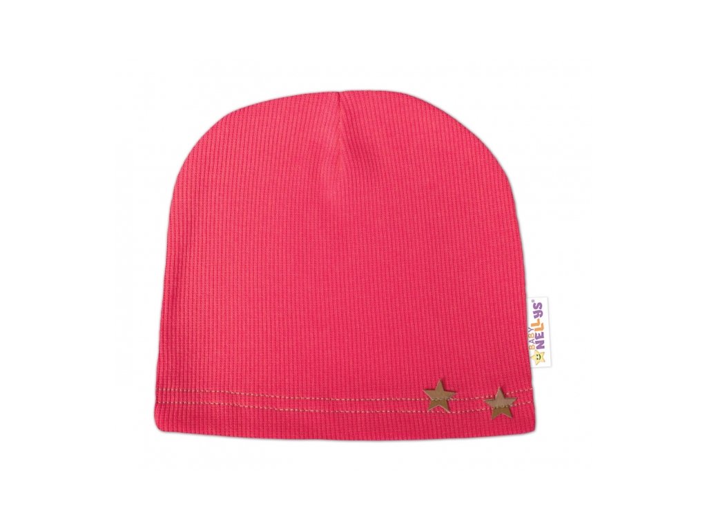 Baby Nellys Žebrovaná čepice Hvězdičky - korálová
