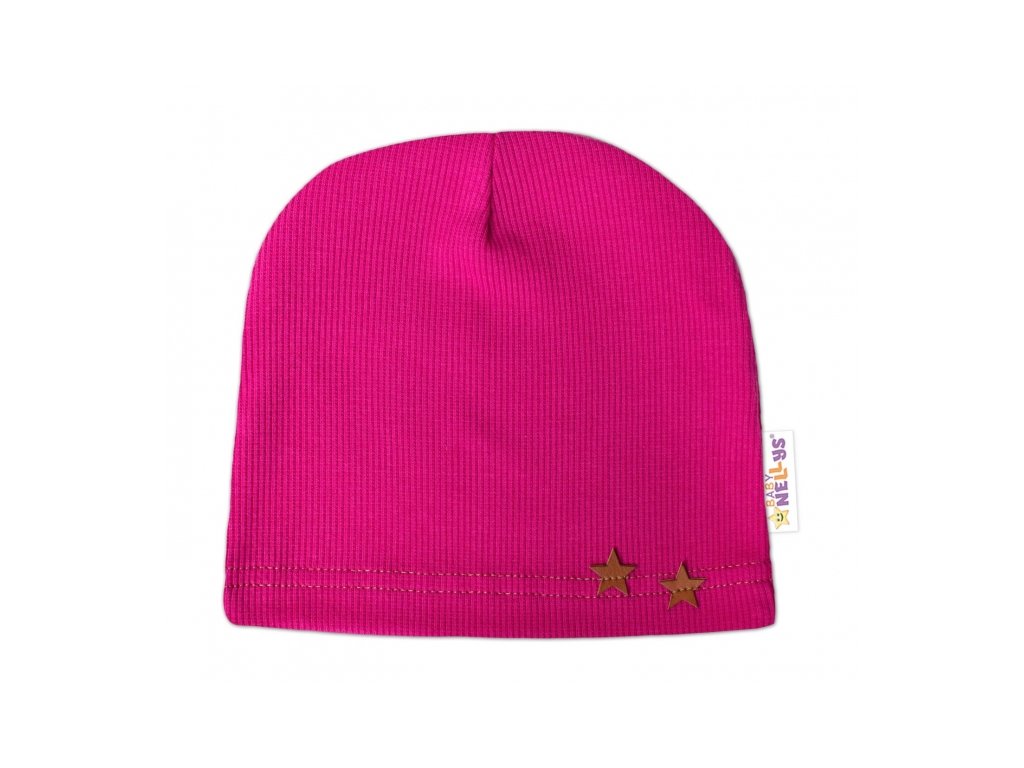 Baby Nellys Žebrovaná čepice Hvězdičky - malinová