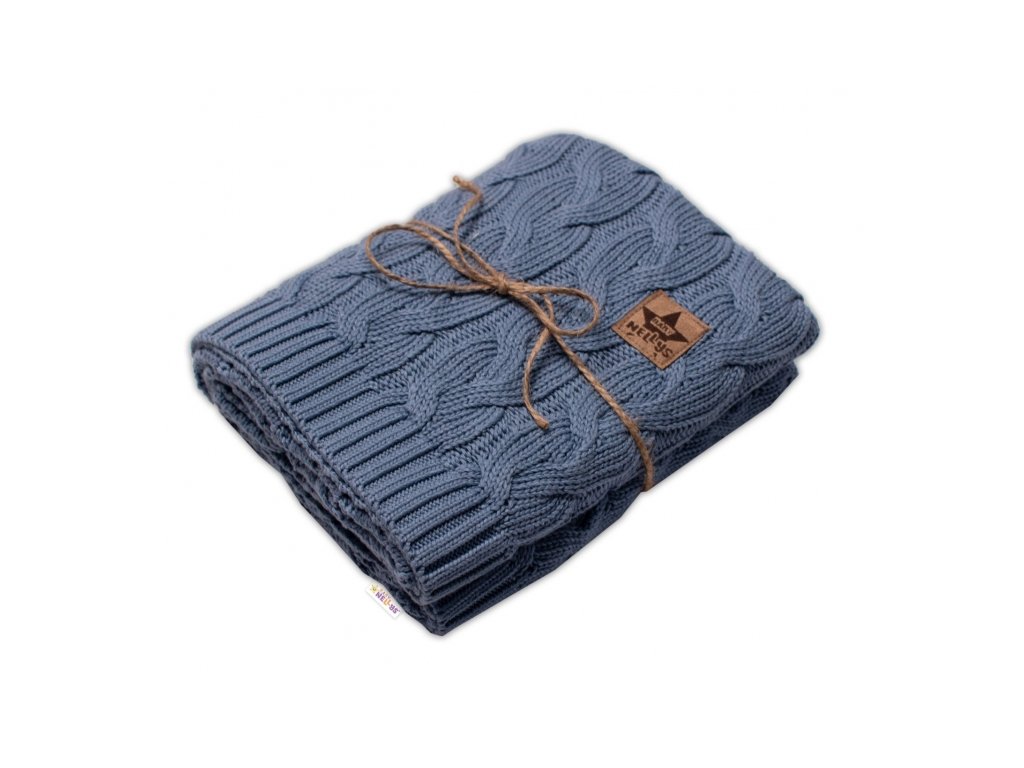 Bambusová dětská pletená deka Baby Nellys, vzor pletený cop, 80 x100 cm, jeans