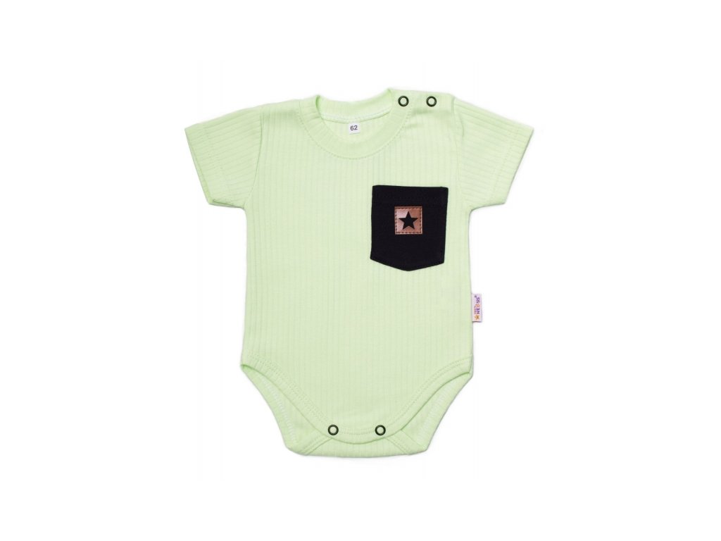 Bavlněné žebrované body s kapsičkou, kr. rukáv, Summer Boy - zelené