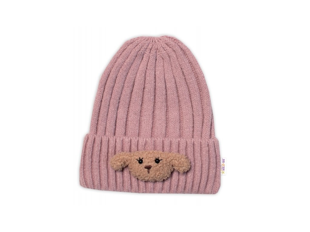 Dětská zimní čepice Bear, Baby Nellys - pudrově růžová, vel. 48-54 cm