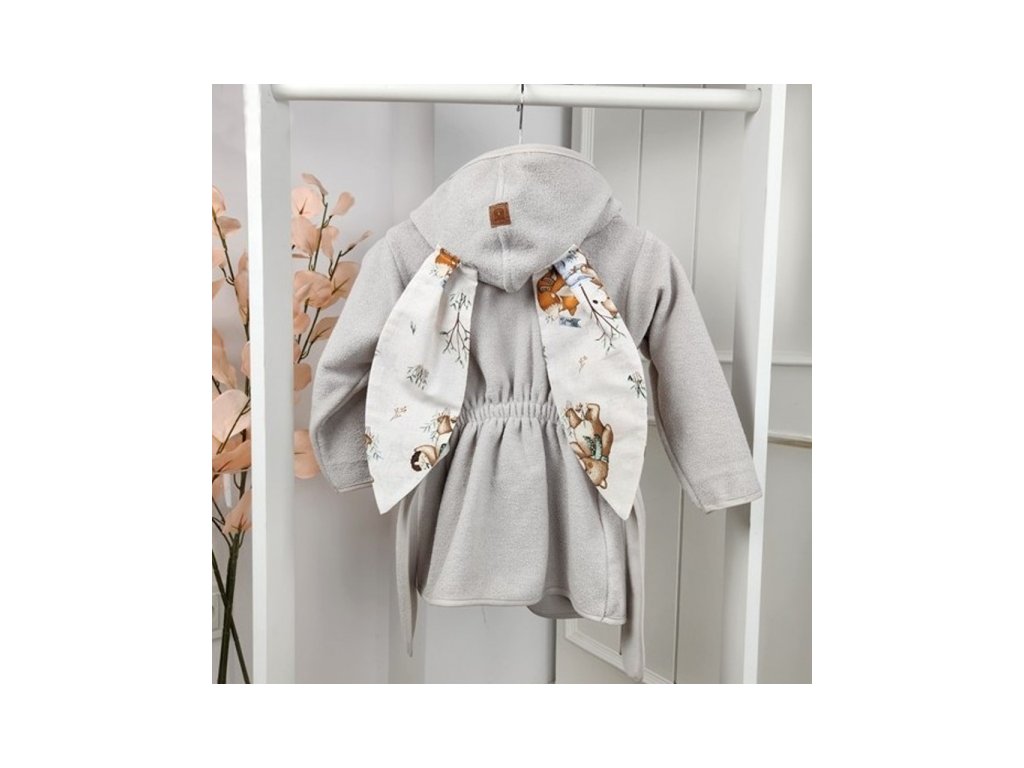 Dětský župan s kapucí a oušky - termofroté + 100% bavlna, nastavitelný v pase.Je ideální při večerních koupacích rituálech. Může snadno nahradit ručník nebo koupací osušku. Miminko zabalené v tomto županu se bude cítit bezpečně a pohodlně.