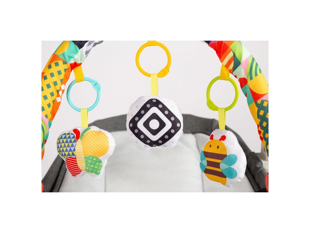 Edukační hrazdička s barevnými senzorickými hračkami je skvělou volbou pro miminka od narození až do 18 měsíců.