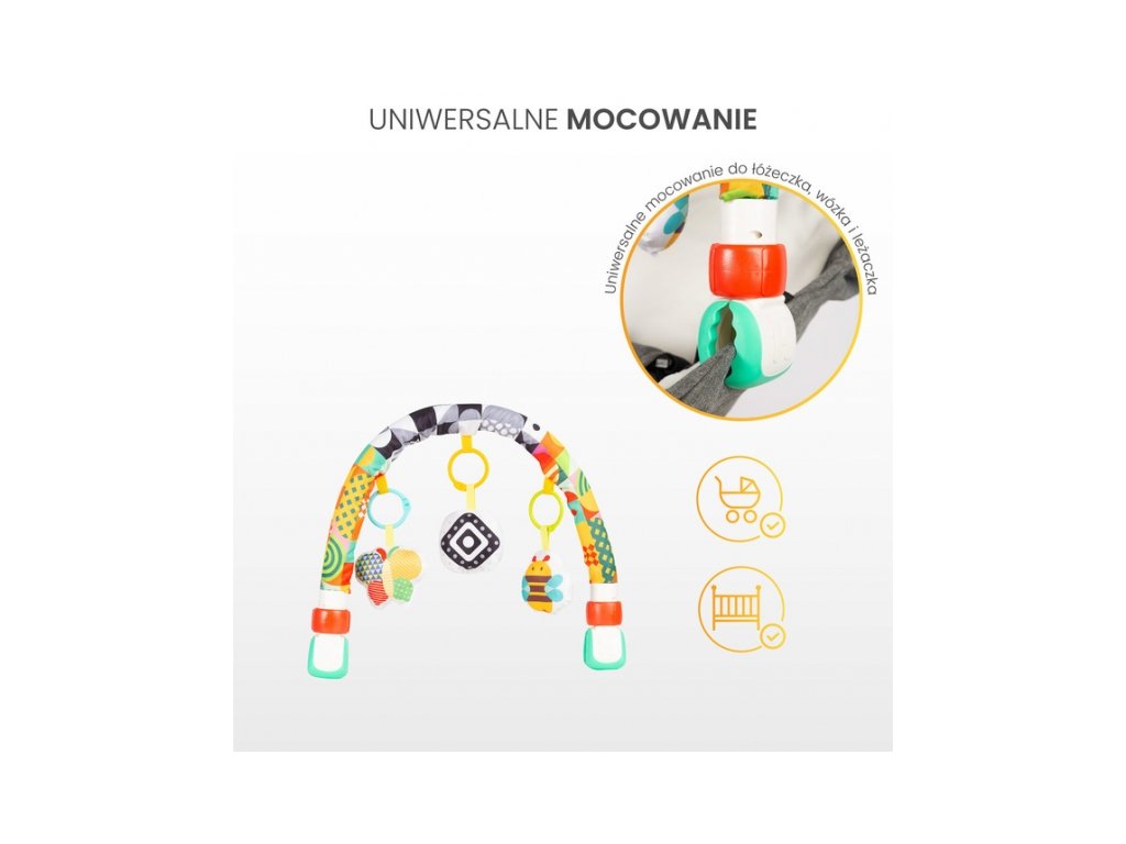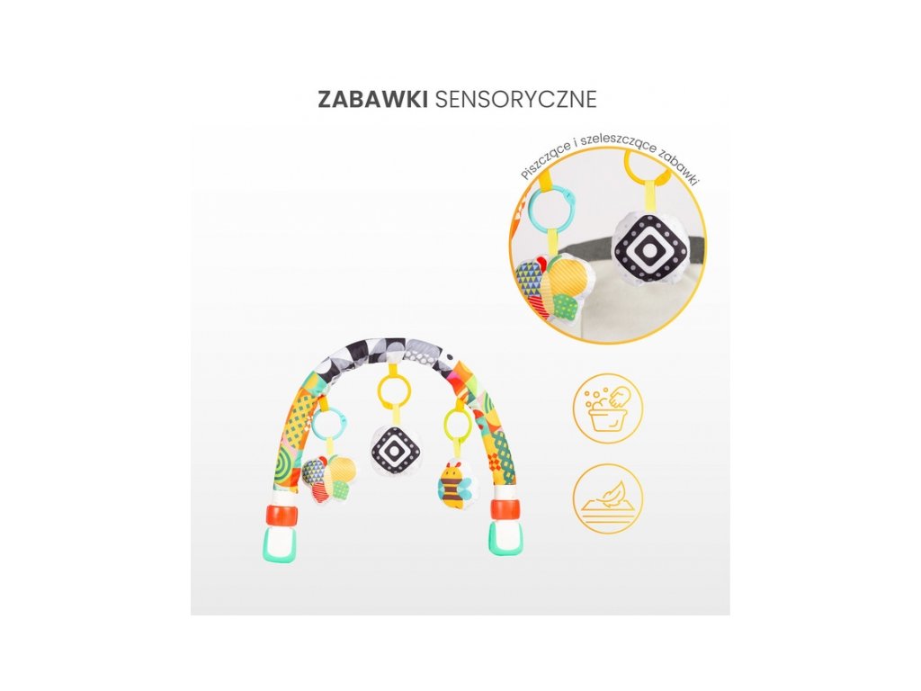 Edukační hrazdička na kočárek s hračkami – senzorická hrazdička pro miminka 0–18 měsíců.Rozvoj hrou.