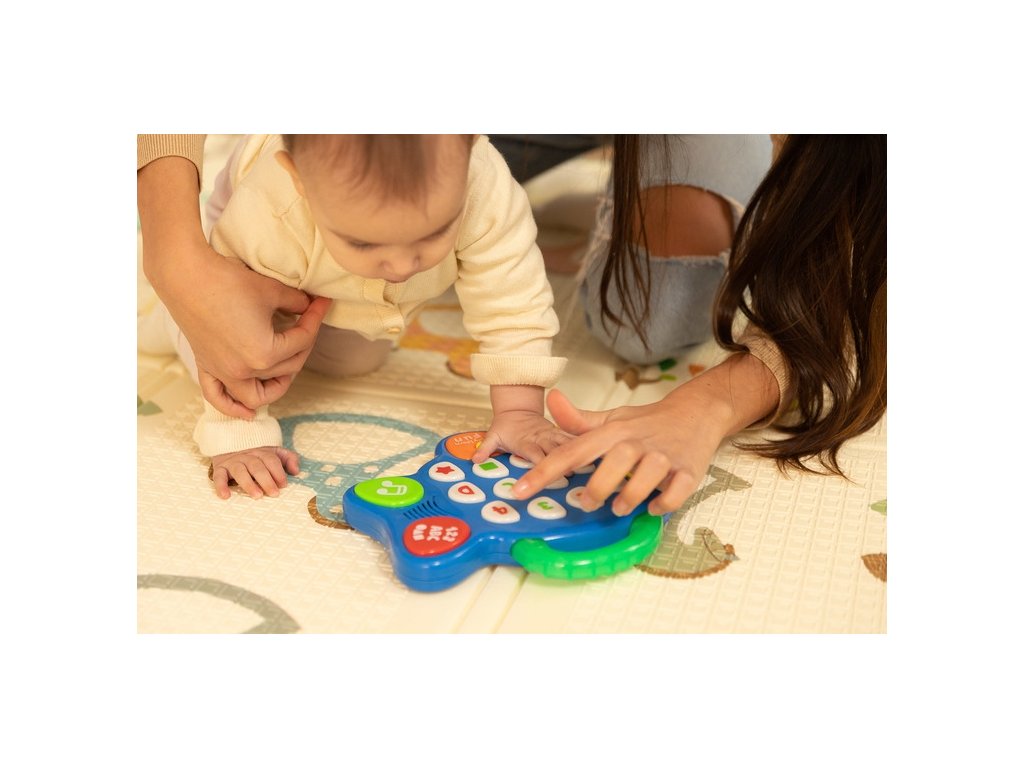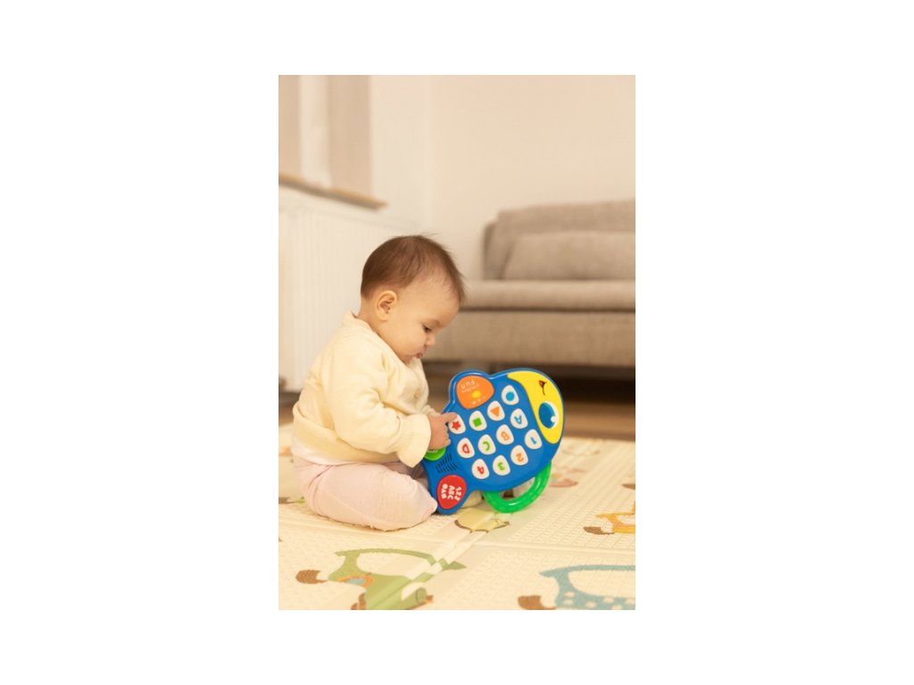 Edukační hudební hračka.Podsvícená klávesnice s barevnými tlačítky vám pomůže naučit se základní tvary, písmena a čísla v angličtině.