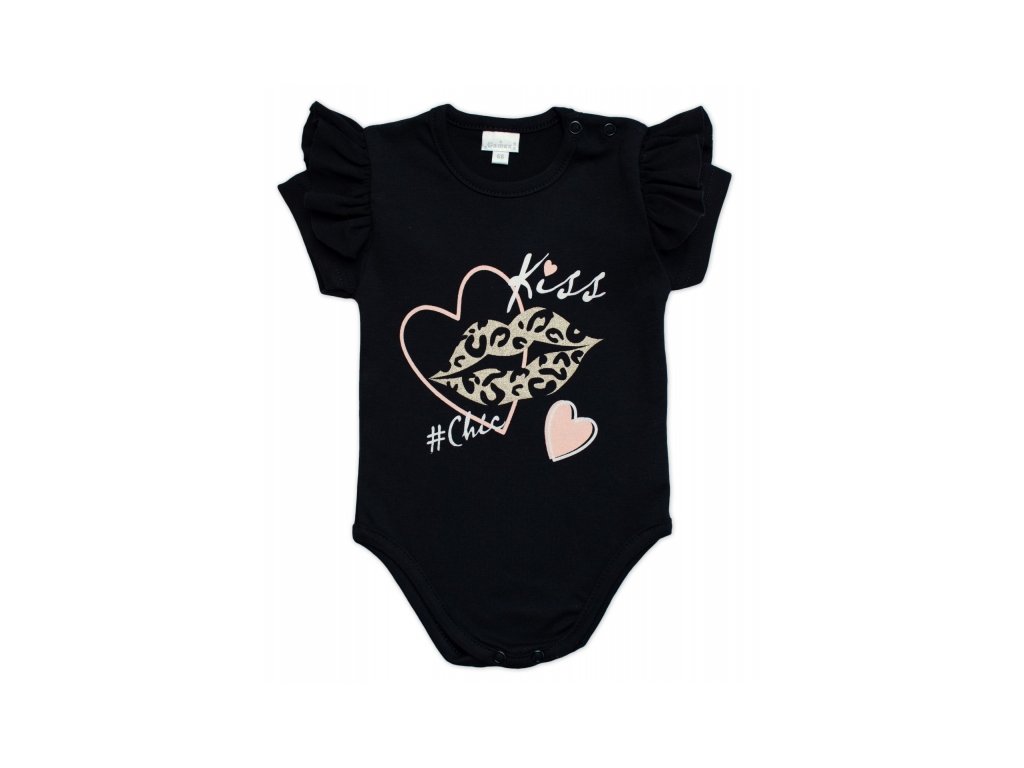 Toto body je vyrobeno z kvalitního materiálu, který je šetrný k citlivé pokožce dítěte. Černá barva je elegantní a snadno se kombinuje s ostatním oblečením. Roztomilý volánek na přední straně přidává body jemný a atraktivní vzhled. Je skvělé na procházky nebo jako stylový doplněk k dalším outfitům.