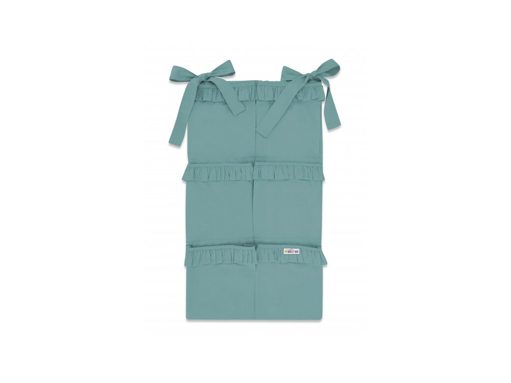 Kapsář na postýlku s volánky ROYAL, 6 kapes - tm. mátový