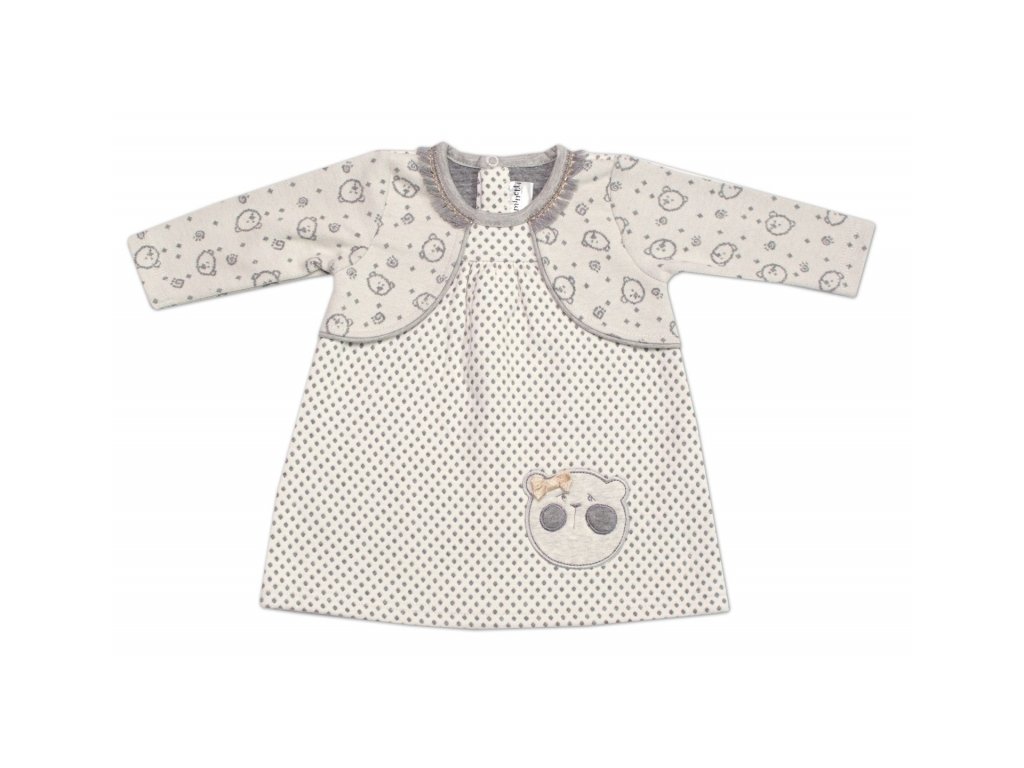 Kojenecké šatičky s bolerkem Lovely Teddy, Minetti - ecru/šedé