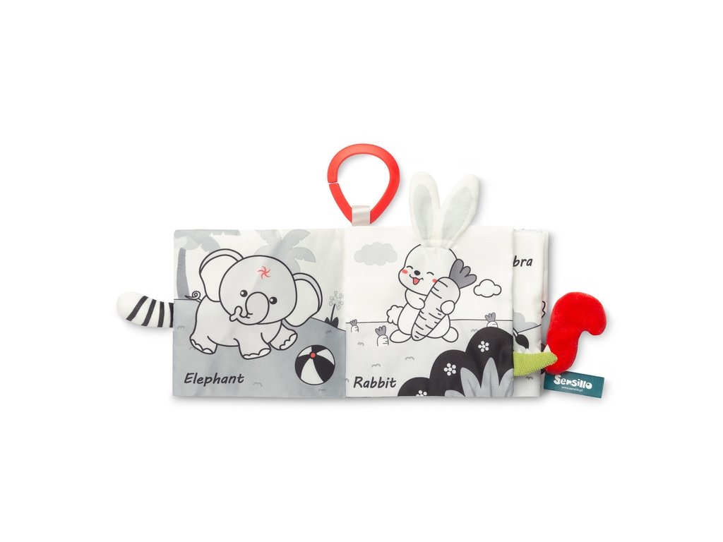 Smyslová knížka v černo-bílé kombinaci je jedinečná hračka navržená tak, aby stimulovala smysly vašeho dítěte.