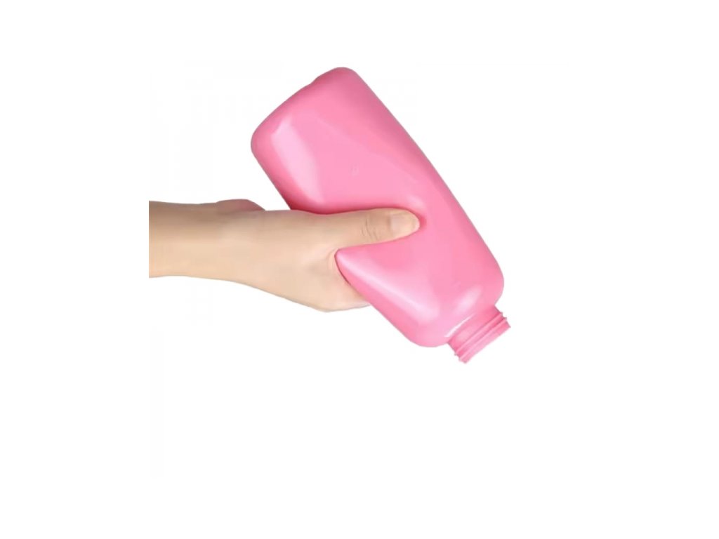 bez nutnosti ohýbání nebo pro těhotné ženy, kterým větší bříško ztěžuje běžné hygienické úkony. Láhev je lehká, měkká a snadno stlačitelná.