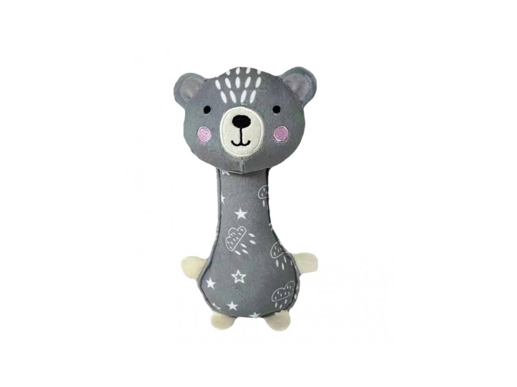 Látková hračka pískací, Medvídek, 17 cm, šedá