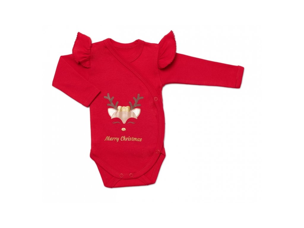 Mamatti Kojenecké body dlouhý rukáv, zapínání bokem, Vánoce s volánkem, červeno/zlatá