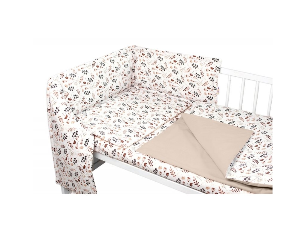 Mantinel s povlečením, 3dílná sada Louka, Baby Nellys, béžová/hnědá