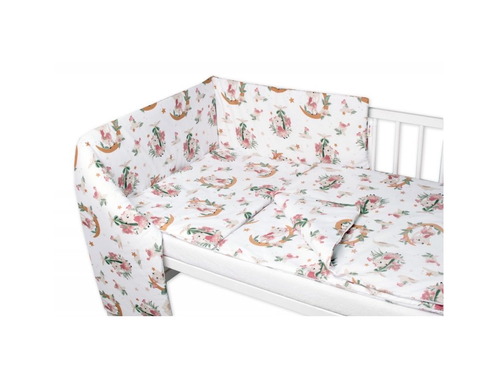 Tento krásný mantinel s povlečením je navržen tak, aby vašemu miminku poskytl maximální komfort a ochranu. Vyrobený z měkké a prodyšné bavlny v bílém odstínu s roztomilým motivem Bunny Star, je nejen praktický, ale i stylový. Mantinel chrání dětskou hlavičku a tělo před tvrdými okraji postýlky, zatímco povlečení zajistí, že vaše miminko bude v teple a pohodlí. Tento set je ideální pro každodenní použití a skvěle se hodí do každé dětské pokoje.