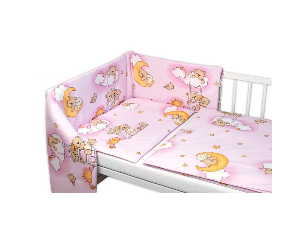 Mantinel s povlečením Premium, Baby Nellys, 3D sada, Medvídek na žebříku, růžový