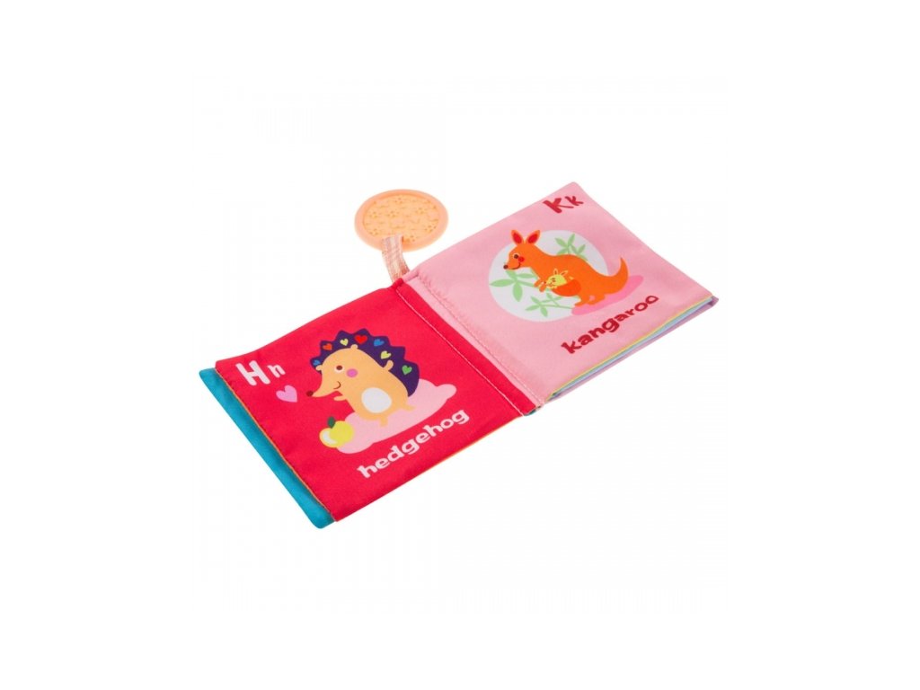 Měkká kontrastní knížka s kousátkem z měkkého, na dotek příjemného materiálu, v kontrastních barvách, šustí a píská.Na každé z 10 stran jsou barevné obrázky.