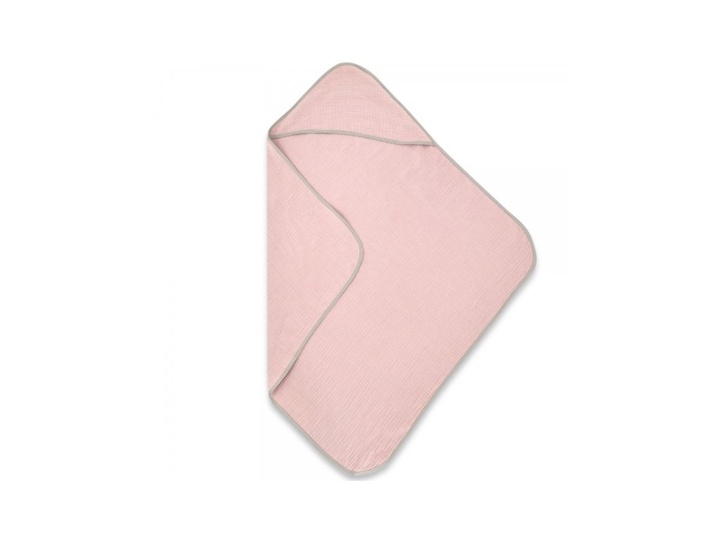 Mušelínová osuška s kapucí NATURE, 80x80 cm, pudrově růžová