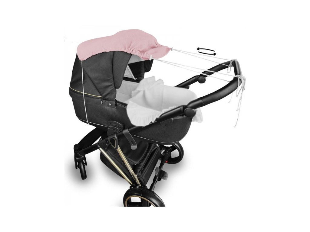 Praktická ochranná stříška na dětský kočárek z prodyšného mušelínu (double gauze) – ideální pro jarní a letní procházky.