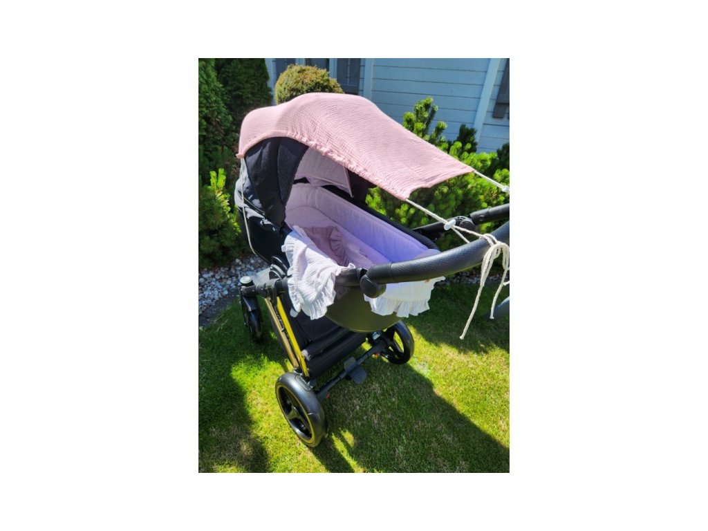 Mušelínová sluneční stříška na kočárek NATURE - pudrově růžová