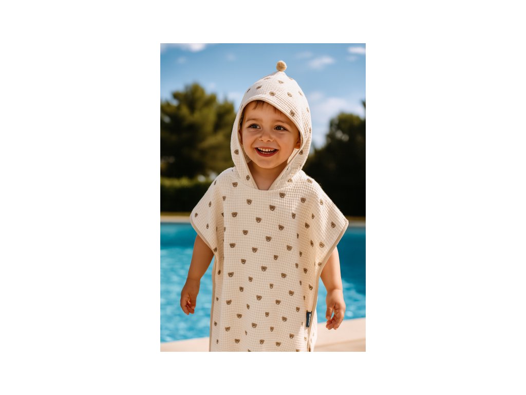 Mušelínové pončo Medvídek - béžové