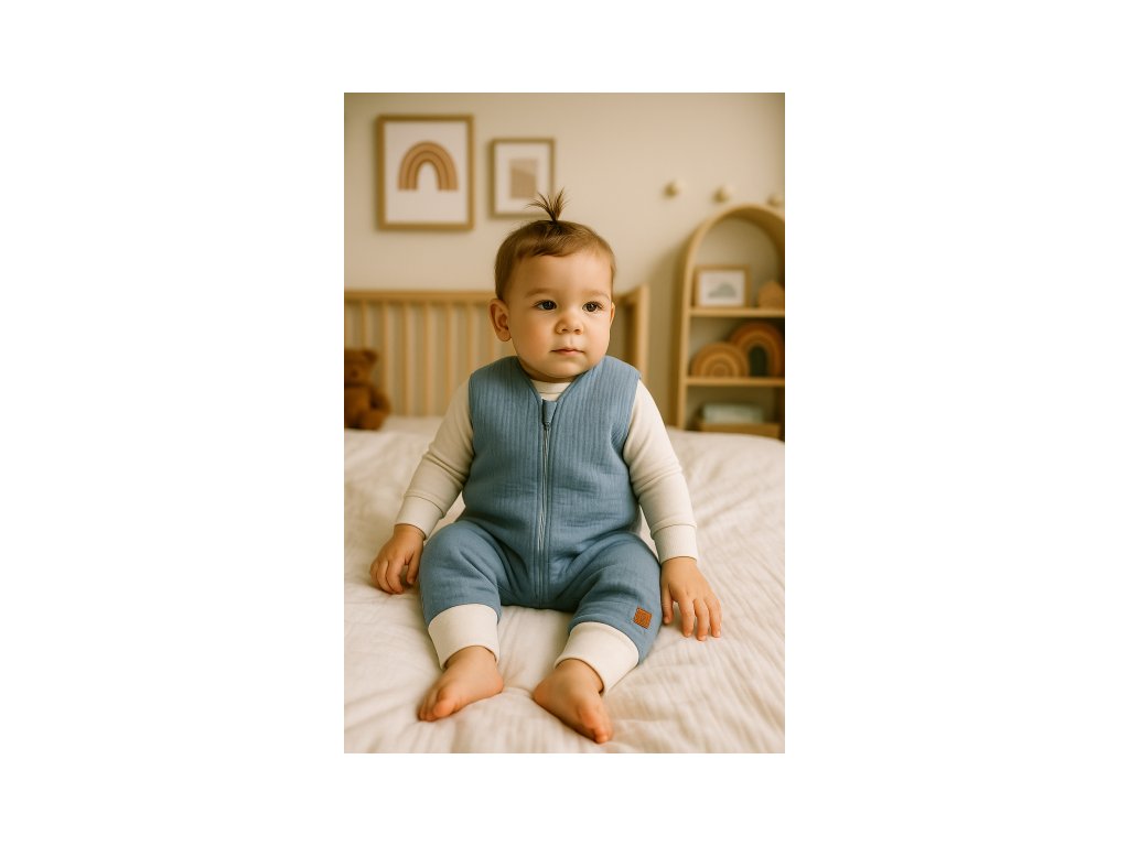 Dětský letní spací vak se zahrnovacími nohavičkami je vyrobený ze 100% bavlny/mušelínu.Další výhody: Tím že je bez rukávů neomezuje miminko v pohybu a zajišťuje vynikající ventilaci během spánku.