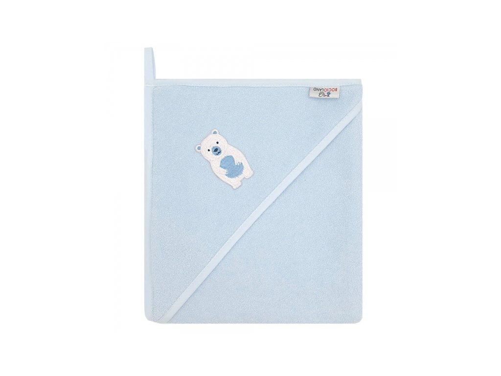Osuška s kapucí a oušky Medvídek, 100x100 cm - modrý