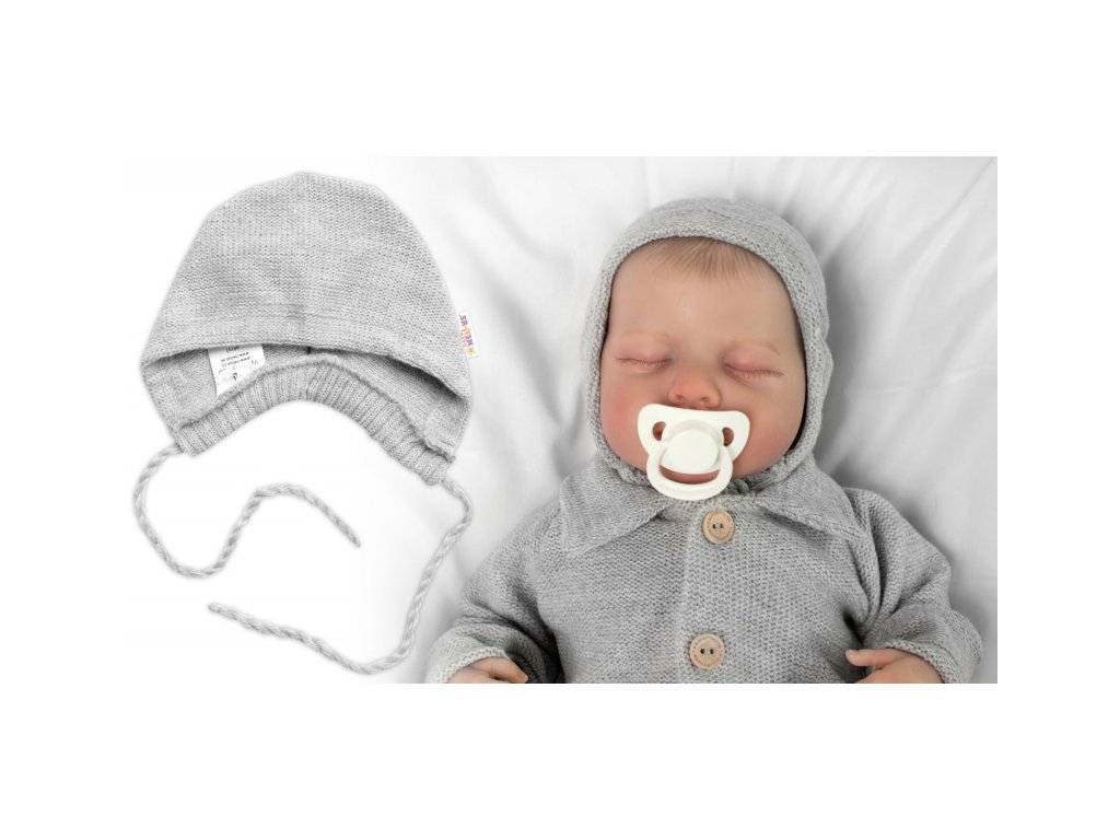 Pletená čepička na zavazování bonetka Boy, Hand Made Baby Nellys, šedá