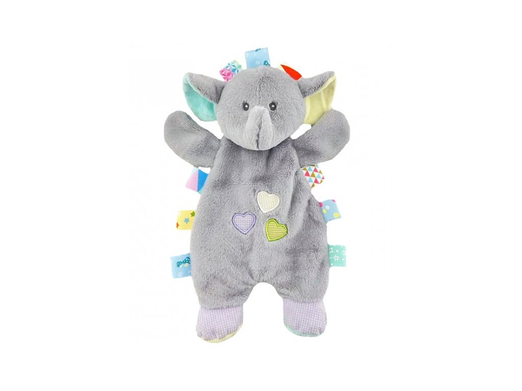 Plyšová edukační hračka, mazlík Slon, 17 cm, šedá
