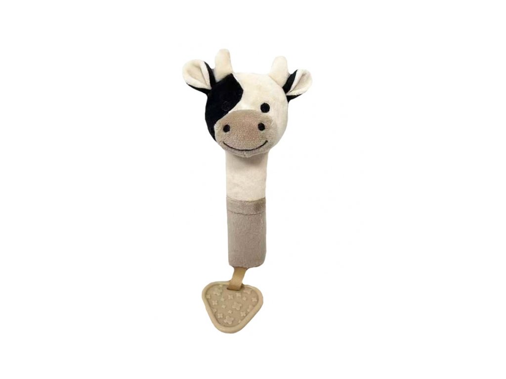 Plyšová hračka s pískátkem a kousátkem Kravička, 17 cm - béžová