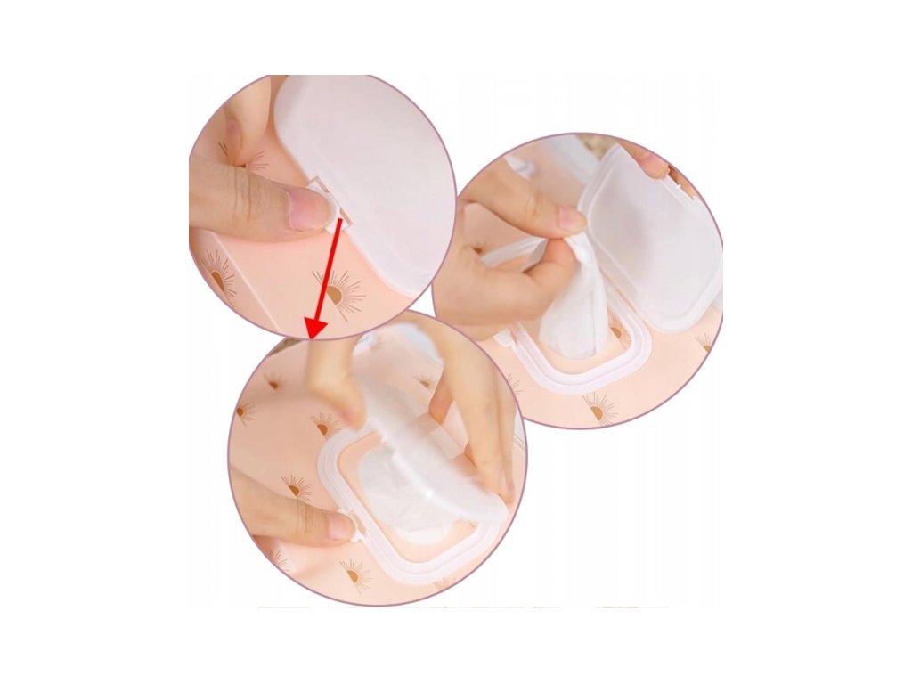 4 Vytáhněte ubrousek a zavřete víčko, dokud neuslyšíte cvaknutí.