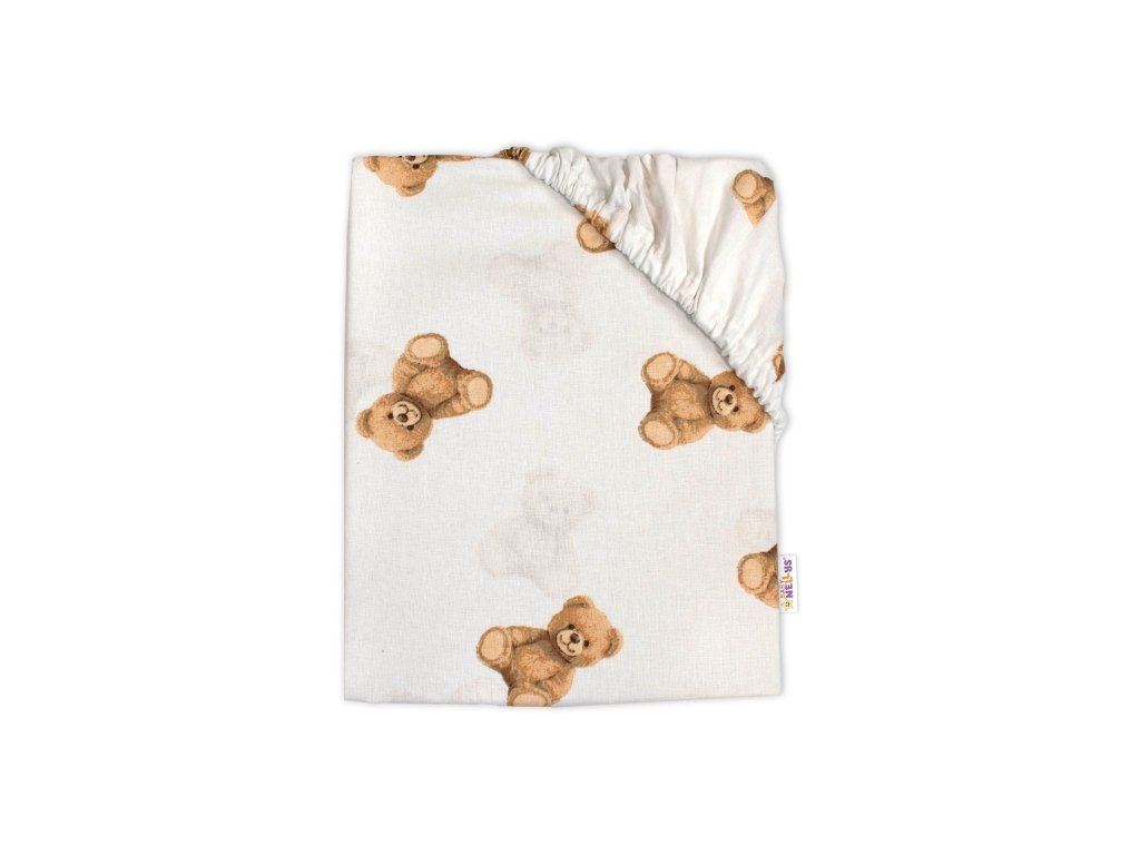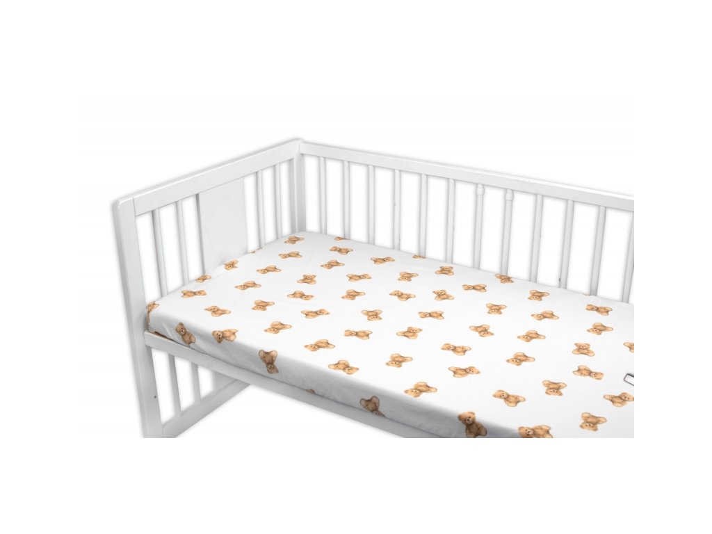 Prostěradlo do postýlky 120x60cm, bavlna, Míša - bílý s potiskem