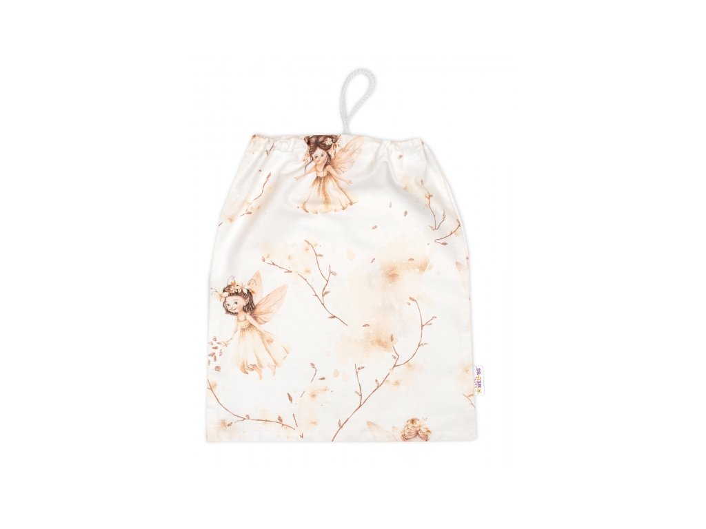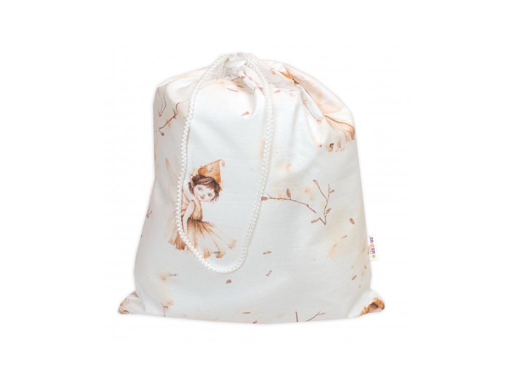 Pytlík na přezůvky 40x32cm, bavlna, Elfí Víla bílá/béžová