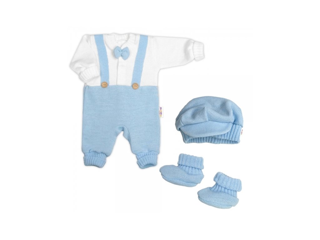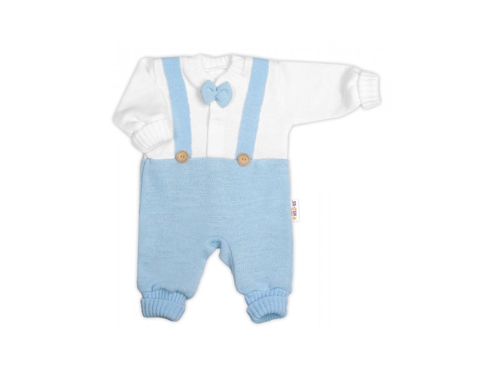 Rostoucí pletený overálek 3D Hand Made malý Elegán - sv. modrý, bílá