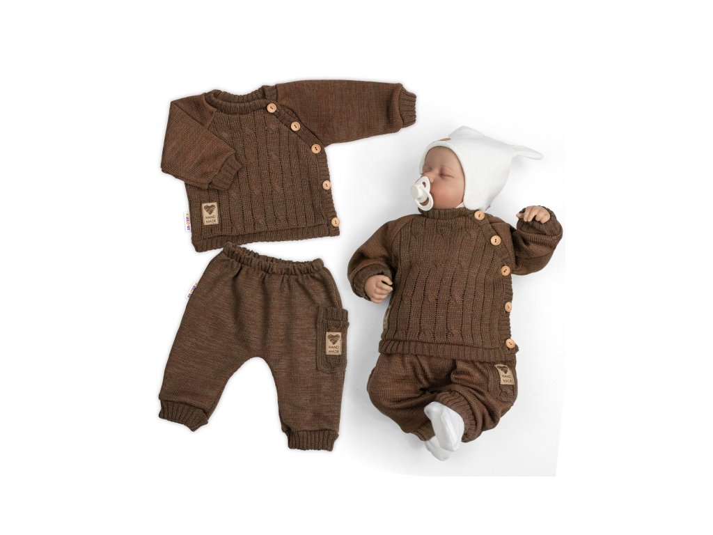 Rostoucí pletený svetřík a kalhoty s kapsou Hand Made 2D, Nature, čokoládová