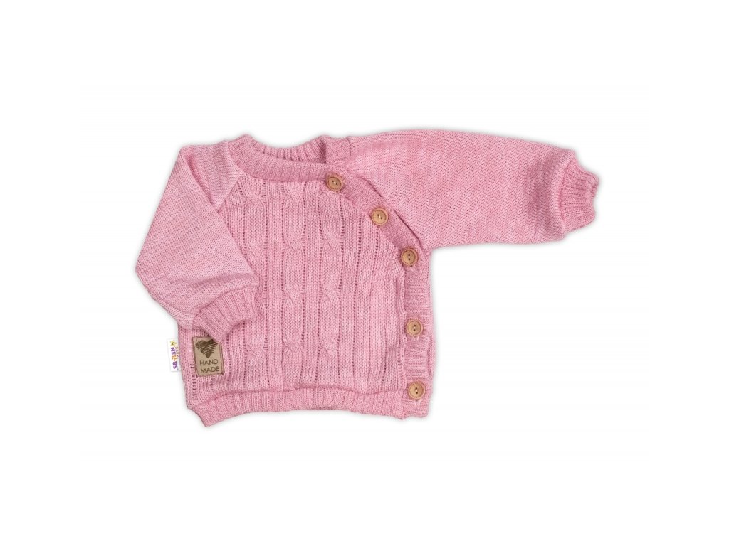 Svetřík s copánkovým vzorem: Jemný na dotek, stylový na pohled. Boční zapínání zajišťuje snadné oblékání,