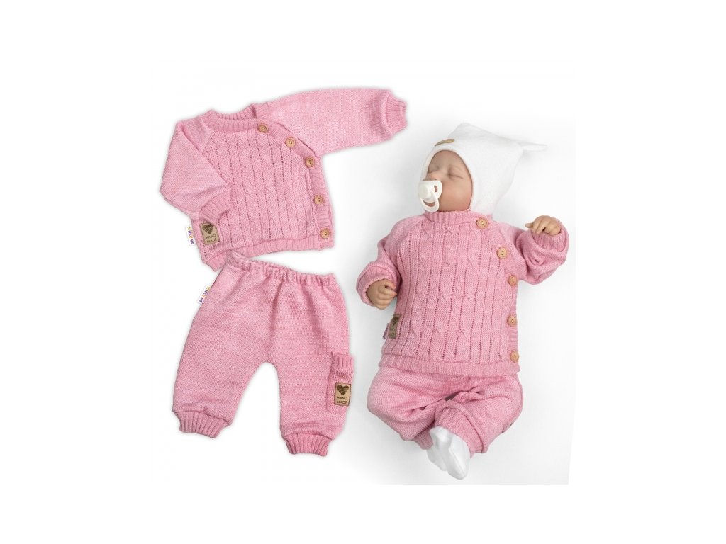 Rostoucí pletený svetřík a kalhoty s kapsou Hand Made 2D, Nature, růžová