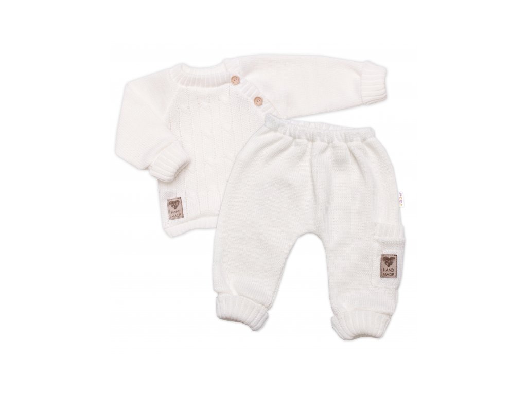 Tato luxusní dvojdílná sada, pletený svetřík a kalhoty s kapsou Hand Made 2D v béžovém melírku, je přesně to, co vaše miminko potřebuje pro dokonalé pohodlí a styl.