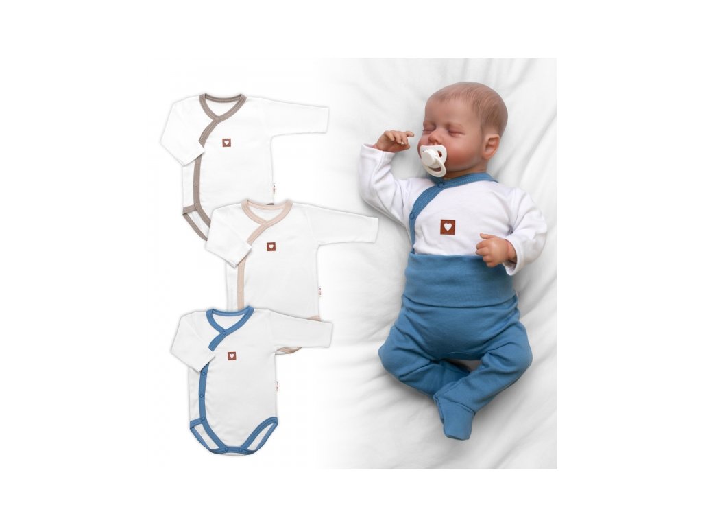 Rostoucí výhodná sada, 3x Body zap. bokem Nature - modrá/béžová/taupe