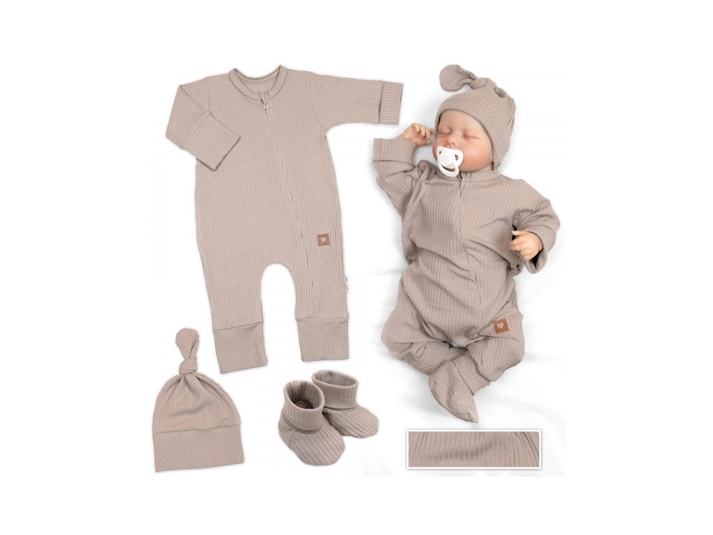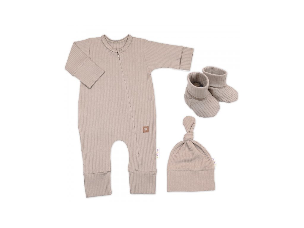 Rostoucí žebrovaný overálek, čepička a botičky, 3D, Nature - toffi