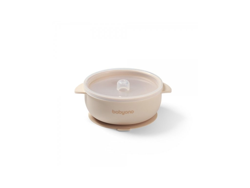 Silikonová miska s přísavkou a víčkem - béžová