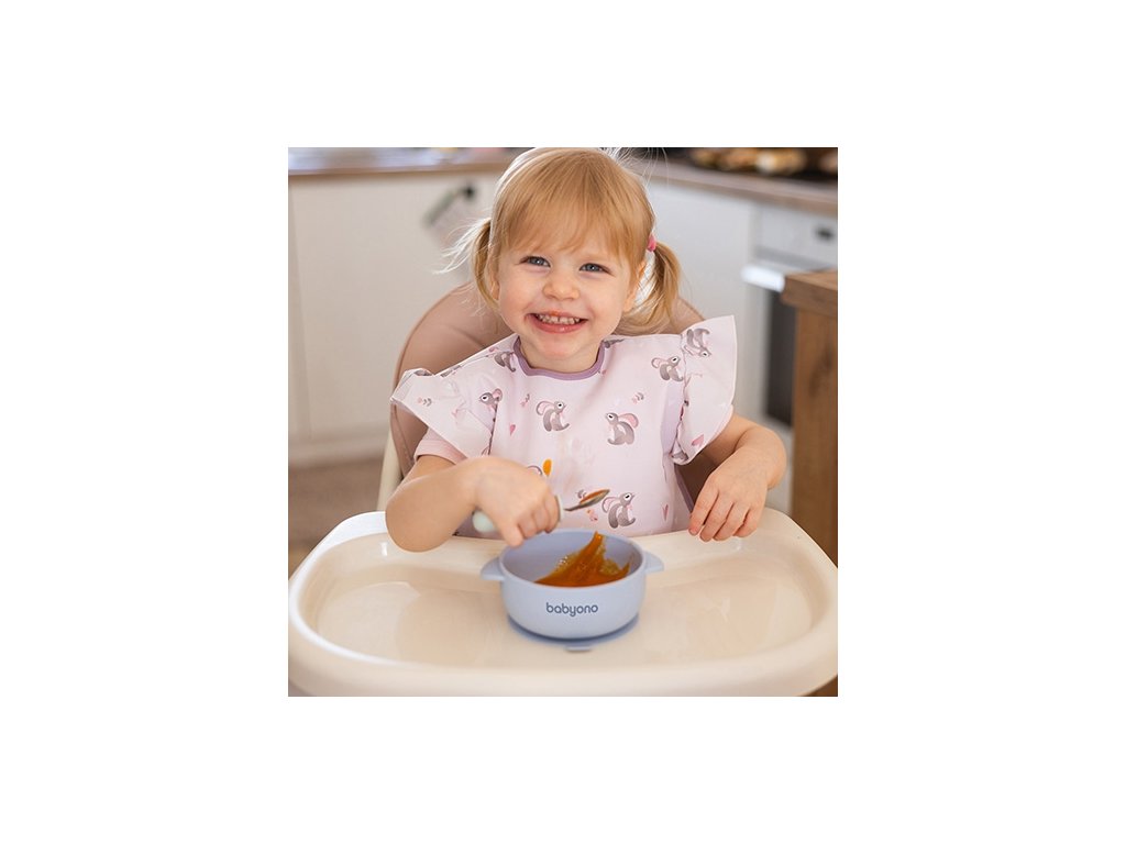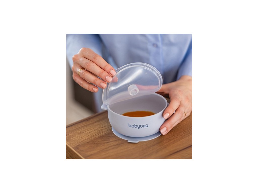 Silikonová miska s přísavkou a víčkem BabyOno je skvělým pomocníkem při zavádění příkrmů i v období, kdy se dítě učí jíst samo. Vhodná na polévky, kaše, těstoviny, zeleninu, ovoce i jogurty.